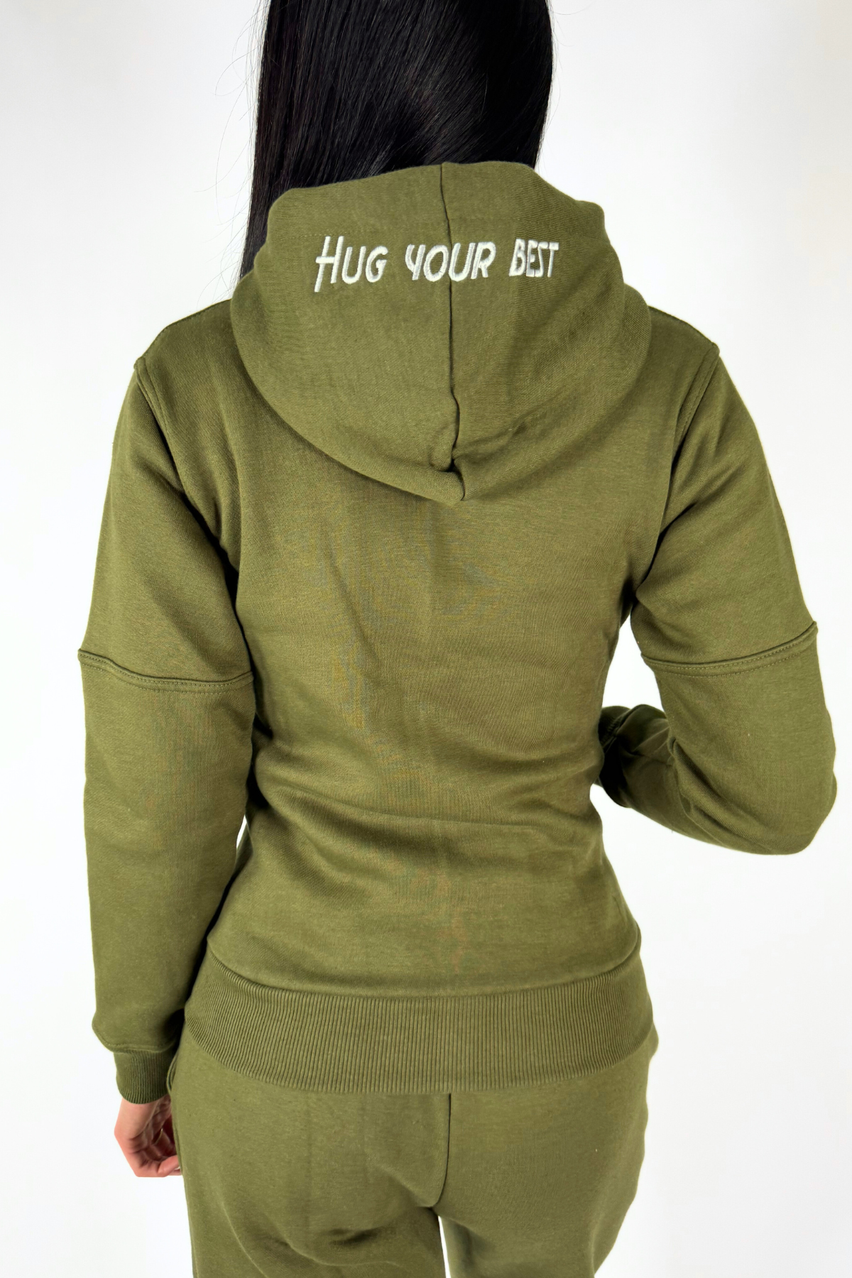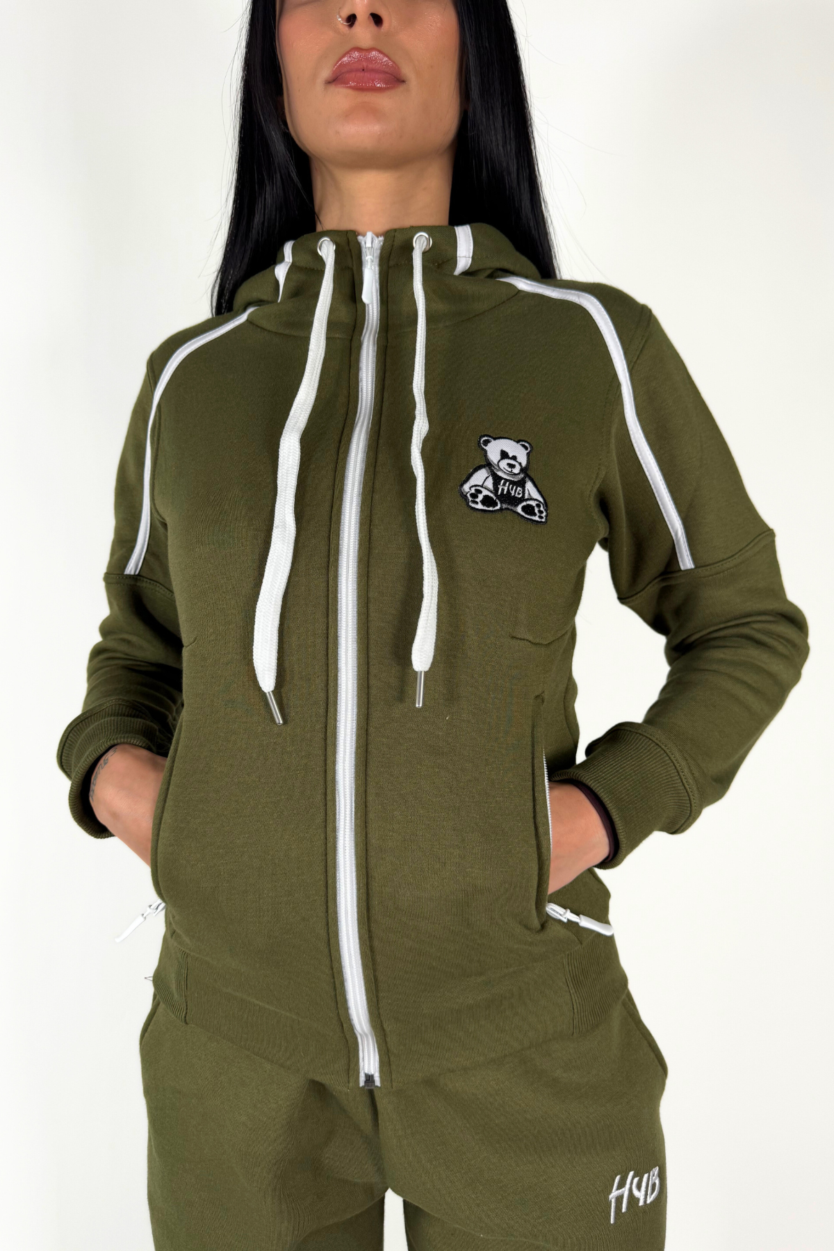 • Logo “orsetto” fronte e logo “Hug Your Best” nel cappuccio ricamati;
